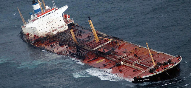 El  Prestige se hundió en las costas gallegas en 2002, provocando una gran marea negra. Fuente: www.comunidadism.es